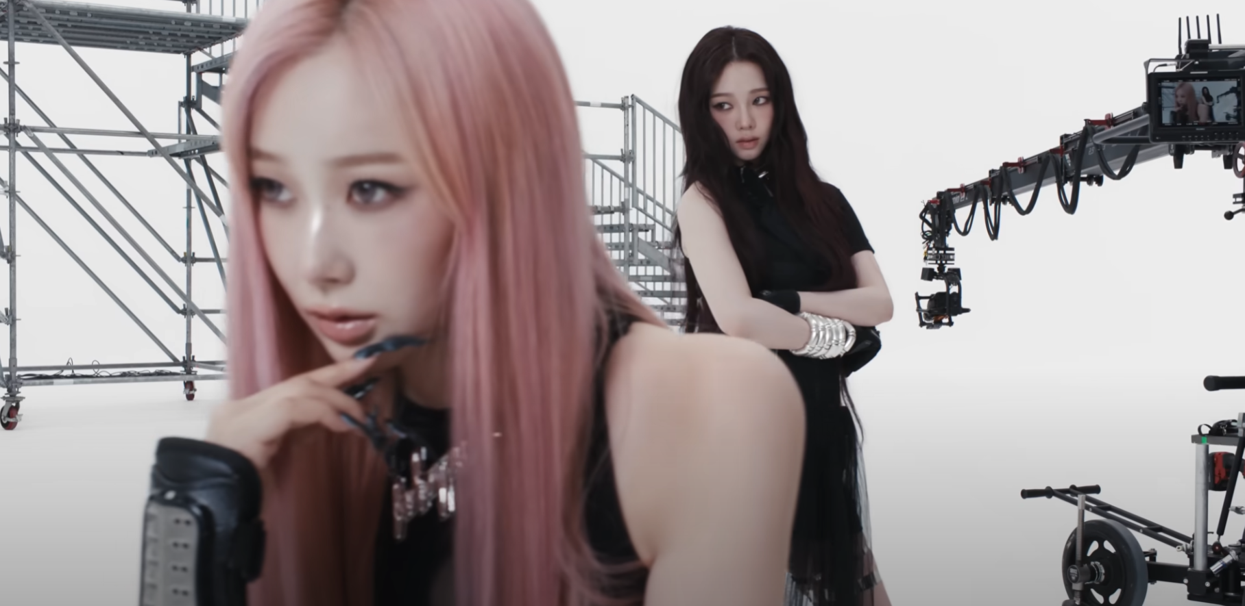 에스파는 내러티브 없이도 시선과 구도로 상징을 만들고, 자기 정체성을 다층적으로 전달한다.